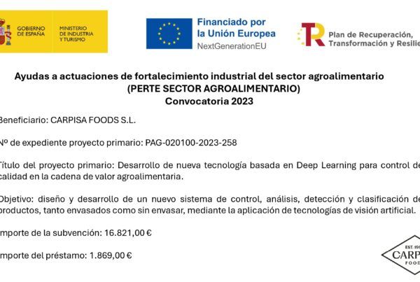 CARPISA FOODS, S.L. ha llevado a cabo el proyecto «Inversiones estratégicas para la producción y transformación de productos cárnicos». El proyecto se cofinancia por el Fondo Europeo Agrícola de Desarrollo Rural (FEADER) y la Administración General del Estado, en el marco de las ayudas de…